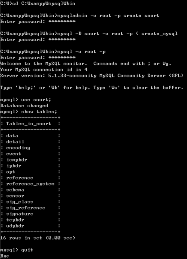 mysql -D snort -u root -p < create_mysql