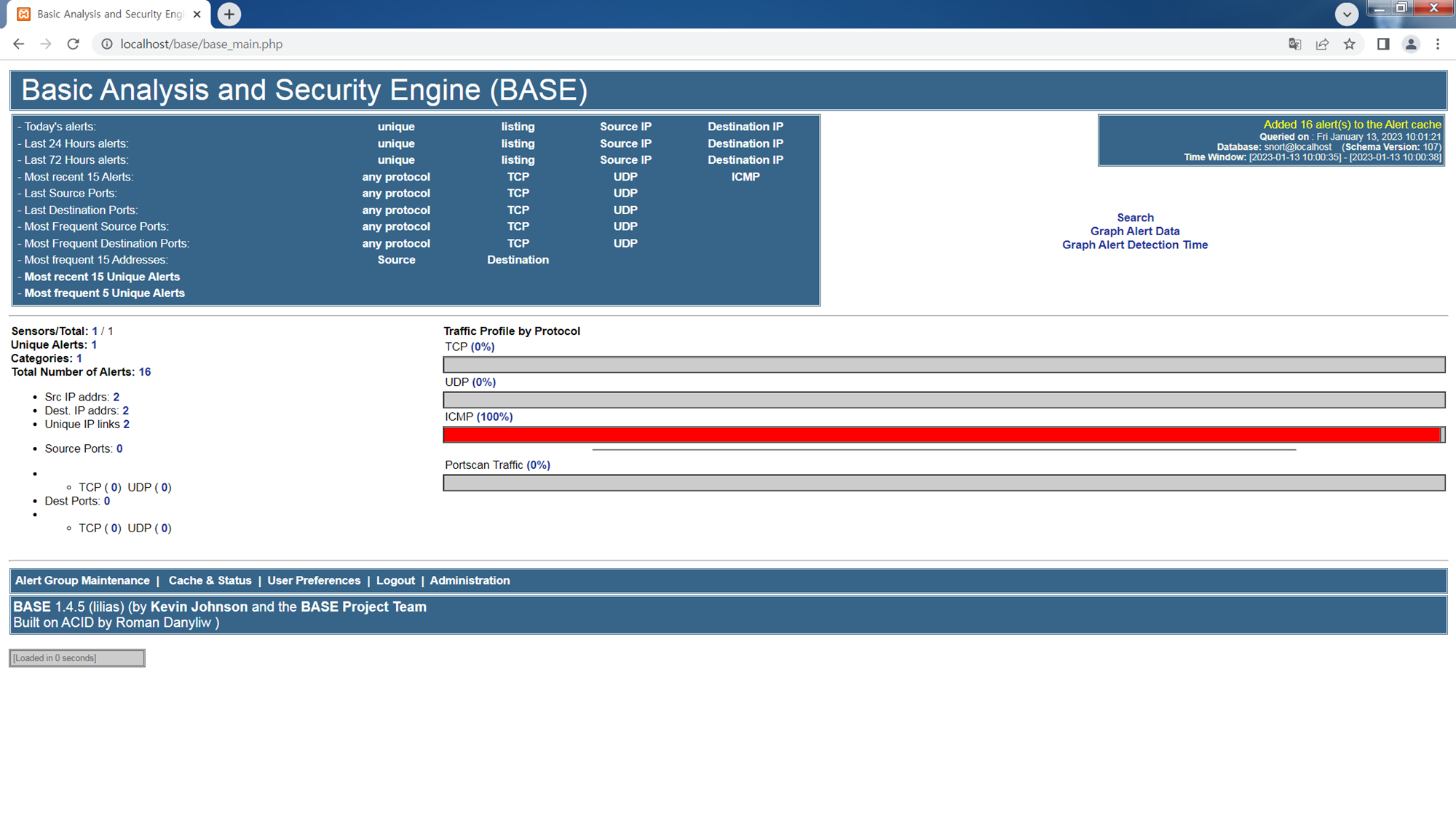 BASE는 Basic Analysis and Security Engine의 약자입니다. 스노트에서 발생한 로그 파일이 데이터베이스에 저장될 때, 이 데이터베이스에 쉽게 접근하고 관리할 수 있는 웹 인터페이스입니다. BASE는 실습 당시 최신 버전인 1.45 버전으로 진행하였으며, 다운로드 링크는 다음과 같습니다.