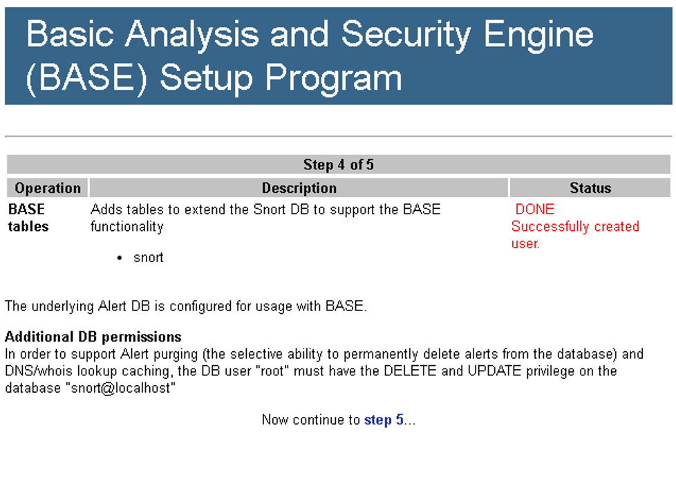 (Snort DB를 생성한다.)
