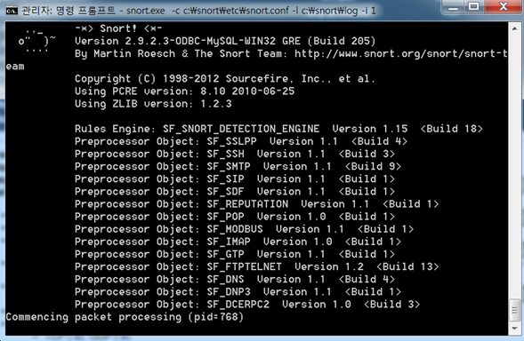 이제 스노트를 작동시킵니다. 명령 프롬프트를 실행하고 다음 명령어를 입력합니다.