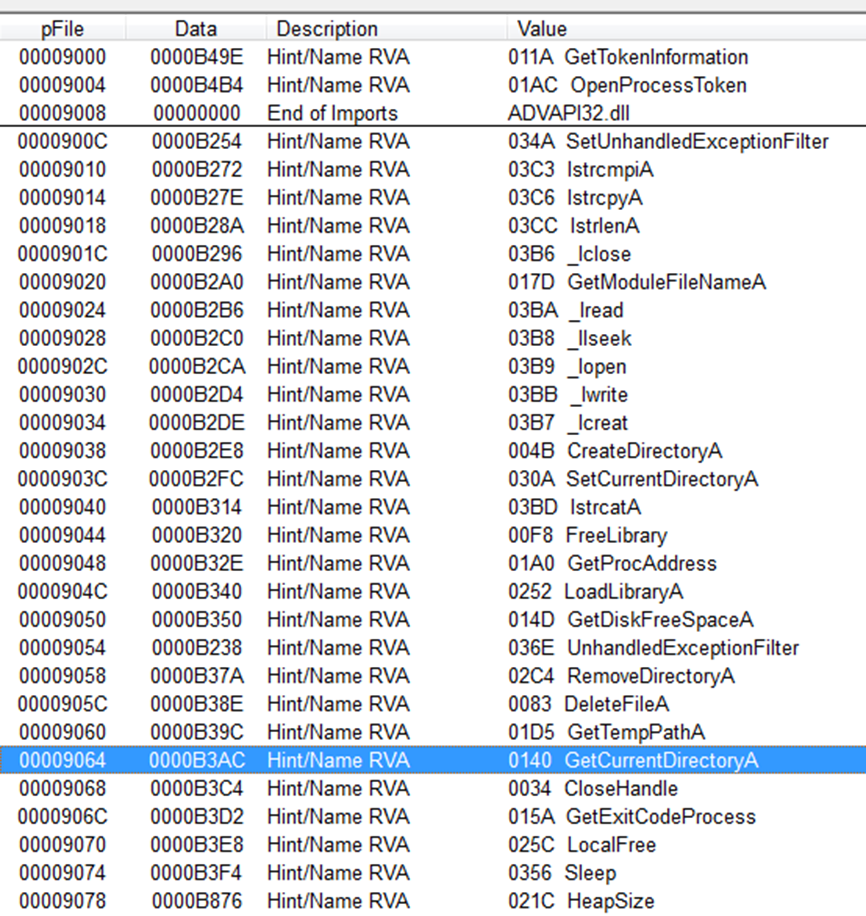 그리고 사용되는 명령어를 조회하여 보니 디렉토리 읽기, 설정 변경, 프로세스 종료, 프로세스 토큰 불러오기 등 다수의 명령어를 사용하는 것을 확인할 수 있었습니다. 이는 바이러스 토탈의 행위 탭에서 나타난 분석과 교차 검증이 가능한 행위입니다.