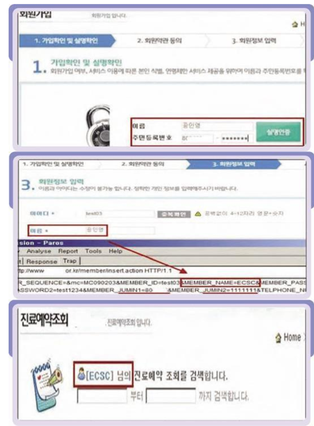 실명 인증 절차의 보안이 취약하기에 발생할 수 있는 취약점 입니다. 이 취약점은 실명 인증이 마무리 된 순간의 페이지를 조작하여 제 3자로 위장하는 등의 활용이 가능한 취약점입니다.