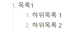 TAB⭾ 키를 한번 누르거나 스페이스바를 4번 눌러 한단계 들여쓰기를 하고, 목록을 작성합니다.
