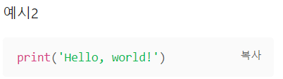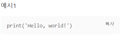 택스트를 코드 블록으로 감쌉니다. 코드 블록에 있는 코드를 즉시 복사할 수 있는 버튼이 추가됩니다. 또한 사용할 프로그래밍 언어를 표시한다면 해당 프로그래밍 언어에 맞는 강조효과를 부여합니다.