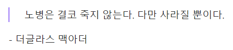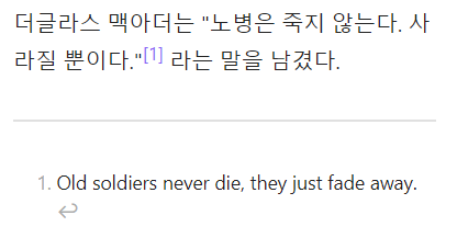>노병은 결코 죽지 않는다. 다만 사라질 뿐이다.