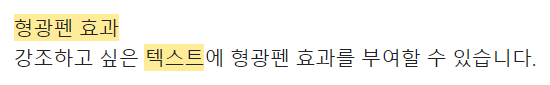 강조하고 싶은 ==텍스트==에 형광펜 효과를 부여할 수 있습니다.