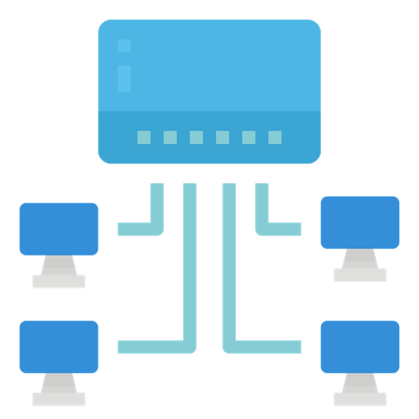 다음 장비는 허브입니다. 허브의 별칭은 멀티포트 리피터입니다. 리피터처럼 신호를 받아 증폭해 주는 기능은 똑같이 할 수 있으며 동시에 멀티포트를 가지고 있어 여러 장비들을 연결할 수 있습니다. 허브는 이렇게 여러 기기들로부터 오는 신호를 받아 연결된 모든 장치에 다시 전달하는 역할을 합니다. 신호를 받은 장비들은 자신이 받아야 하는 신호라면 받아들이고 자신이 받아야 하는 신고가 아니라면 무시하는 방식으로 통신을 하게 됩니다.