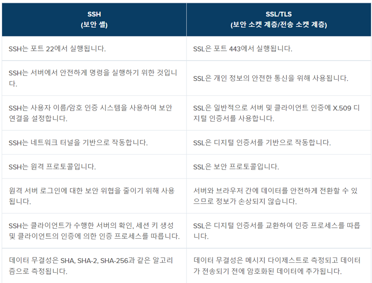 SSH와 SSL의 가장 큰 차이점은 SSH는 개발자를 위한 도구이고 SSL은 사용자를 위한 도구라는 점입니다.